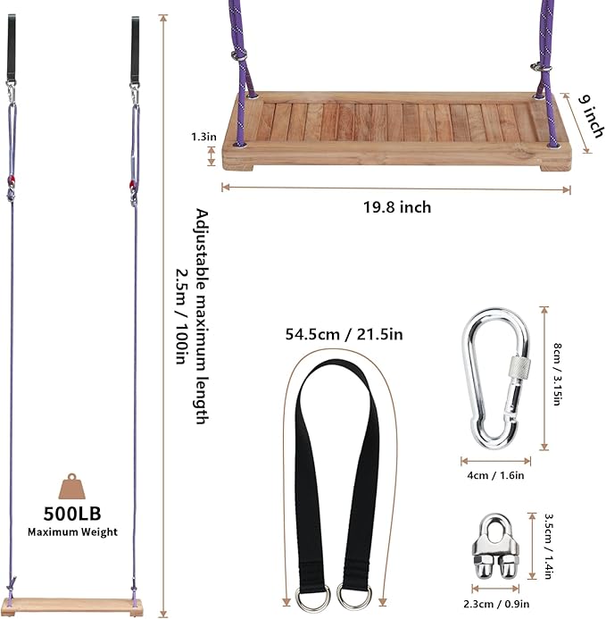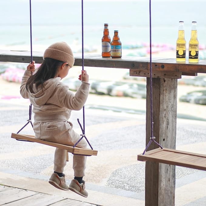 - Safety You Can Count On: The included ropes are as tough as they come, meeting professional climbing rope standards for strength. We’ve added heavy-duty thimbles, stainless steel grommets, and reinforced carabiners, all designed to withstand up to 500 pounds of weight! Plus, each wooden plank is carefully sanded to keep those swings smooth and safe.