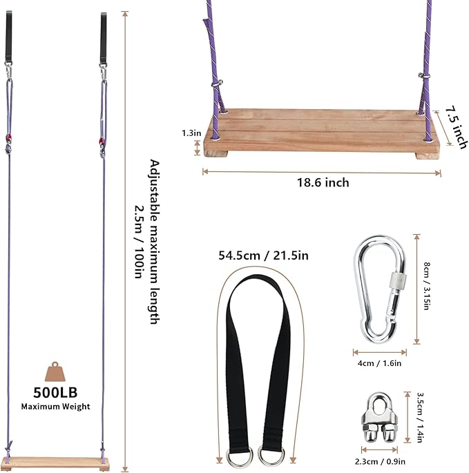 - Adjustable Height–With a rope length of 100 inches, equipped with a figure-8 buckle, rope clamps, and hooks, the swing height can be freely adjusted based on different usage scenarios. It suits people of various heights, allowing your family to fully enjoy the fun of swinging.