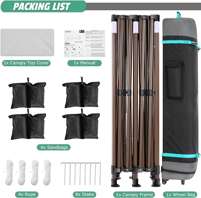 - 【Included Accessories】 1x Commercial Grade 10x20 Pop Up Tent Frame, 1x Top Cover, 6x PU Coated Panels (4 x Sidewalls with Windows and 2x Sidewalls with Zippers), 4x 420D Oxford Fabric PVC Coated Sandbags, 8 x Ground Pegs, 4x Windproof Ropes, 1x Rolling Bags, 1x Manual. Please feel free to contact us, we will give you the best help. Choosing us means choosing a comfortable life.