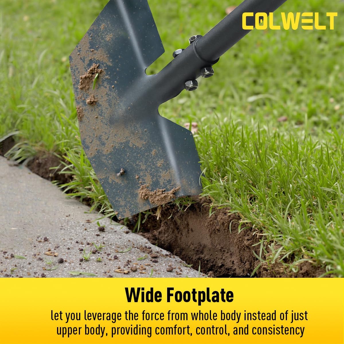 - AGGRESSIVE V-SHAPE BLADE, EASILY CUTS THROUGH EVEN COMPACTED SOIL -- Colwelt all-steel edger lawn tool features a sharp V-shape tempered blade. The V-shape blade is so aggressive to easily cut through even compacted soil, which is more effective than the rounded ones. This Colwelt garden edger chopper can effortlessly remove sod, creating straight cut edges and neatly defined borders. The rust-resistant coating design ensures easy cleaning and long-lasting durability.
