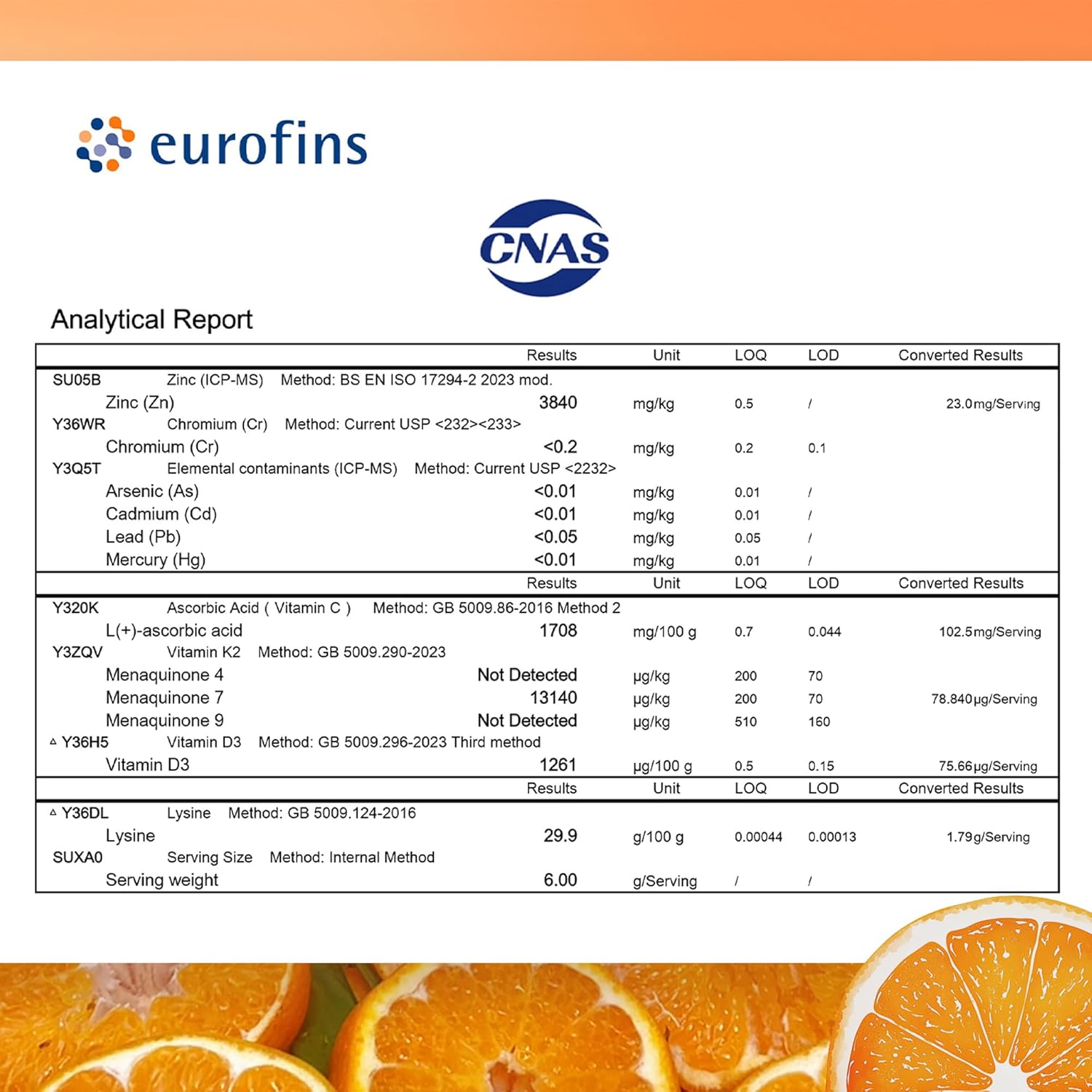 - No Sugar: Enjoy 2 soft, chewy gummies daily, crafted with a refreshing orange flavor and absolutely no added sugar. Savor the delicious taste while keeping your wellness goals on track, all without unnecessary sweets