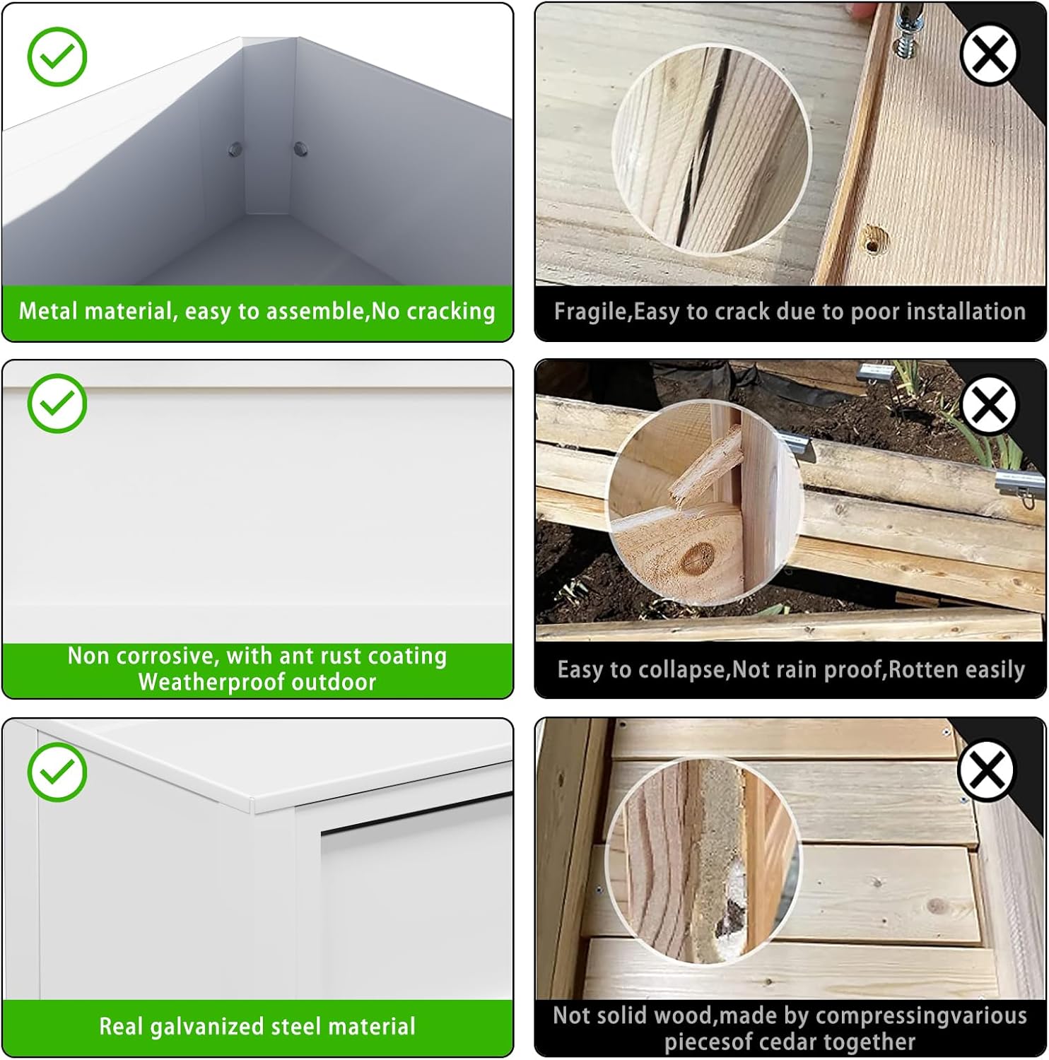 - DURABLE METAL MATERIAL: Made of stable galvanized steel raised garden beds with strong load-bearing capacity and anti-rust coating for durability. It can be placed outdoors or indoors for a long time, and the appearance can be as clean as new after wiping.