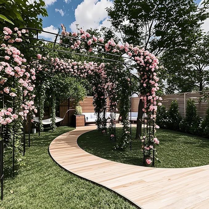 - Sturdy and Durable: Crafted from galvanized steel pipe coated with plastic, this garden pergola is built to last. The heat-resistant steel ensures it remains cool even in high temperatures, providing stable and reliable support for your climbing plants year after year.