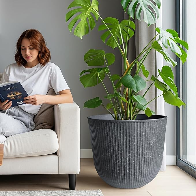- Large Size for Trees & Plants – Each planter measures 17.5 inches in diameter and 15.5 inches in height, providing ample space for medium to large indoor or outdoor plants, including small trees and shrubs.