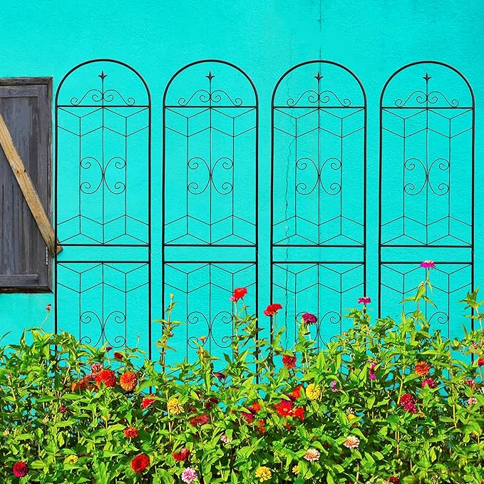 Metal Garden Trellis Rustproof Trellis for Climbing Plants Outdoor Flower Support (Black-4 Pack, 86.7"x19.7")