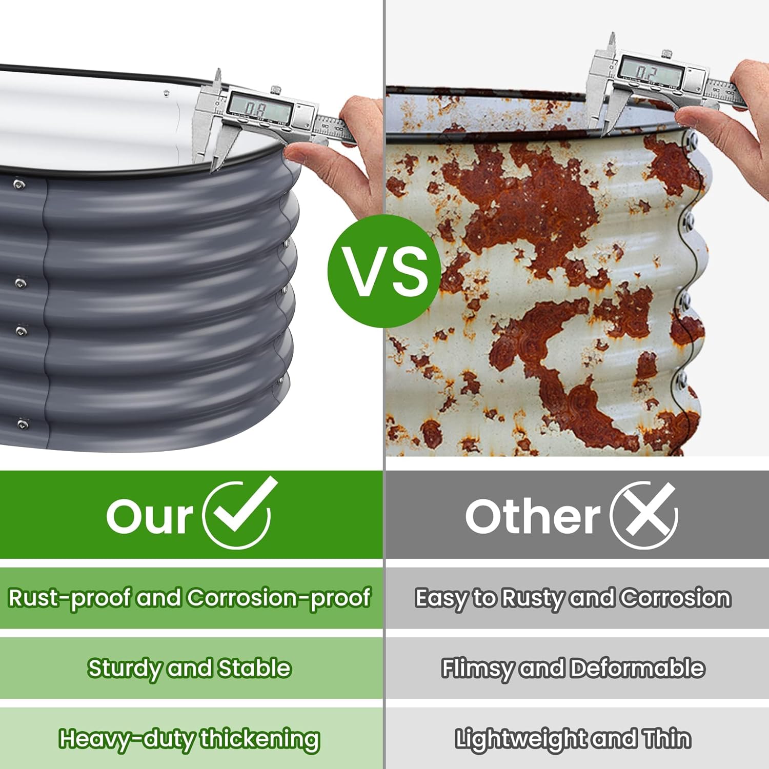 - Long-Lasting Quality:The garden beds are made of zinc aluminum-magnesium steel for durability. This advanced material is more resistant to corrosion and rust than traditional galvanized materials. Lasts 2-6 times longer than traditional galvanized raised beds, far longer than wood raised garden bed.