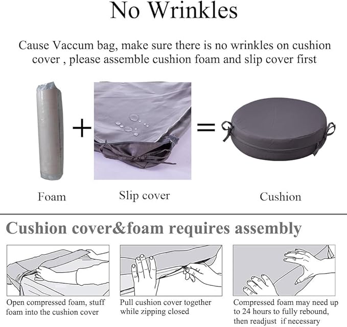 - 【Comfort & Support】 Experience ultimate comfort with the high density foam of these patio chair cushions set of 2. They provide excellent support for your hip, promoting good posture and allowing you to relax for extended periods of time. All outdoor dining chair cushions are packed with vacuum bag. You need to assemble cushion to make there is no wrinkles in cushion covers