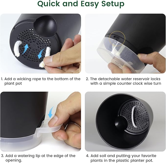- 【Self-Watering System】These 6 inch small plant pots are designed with a wick rope that automatically deliver water to plant roots, reducing the need for frequent watering. The set of 6 pots for plants are perfect for busy individuals and forgetful gardeners