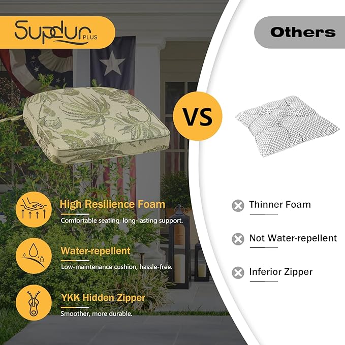 - Easy Care: The cover of the outdoor chair cushion is removable and easy to clean. As the cushions are vacuum-packed, simply press and tap them for a while after unpacking, and they will restore their fluffiness within 5 days.