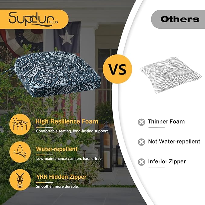 - Non-slip Ties & Piped edge: There are 2 straps on each side of the outdoor furniture cushions to keep stable and feature piped edges for a polished look and superior durability.