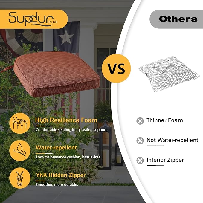 - Easy Care: The cover of the outdoor chair cushion is removable and easy to clean. As the cushions are vacuum-packed, simply press and tap them for a while after unpacking, and they will restore their fluffiness within 5 days.