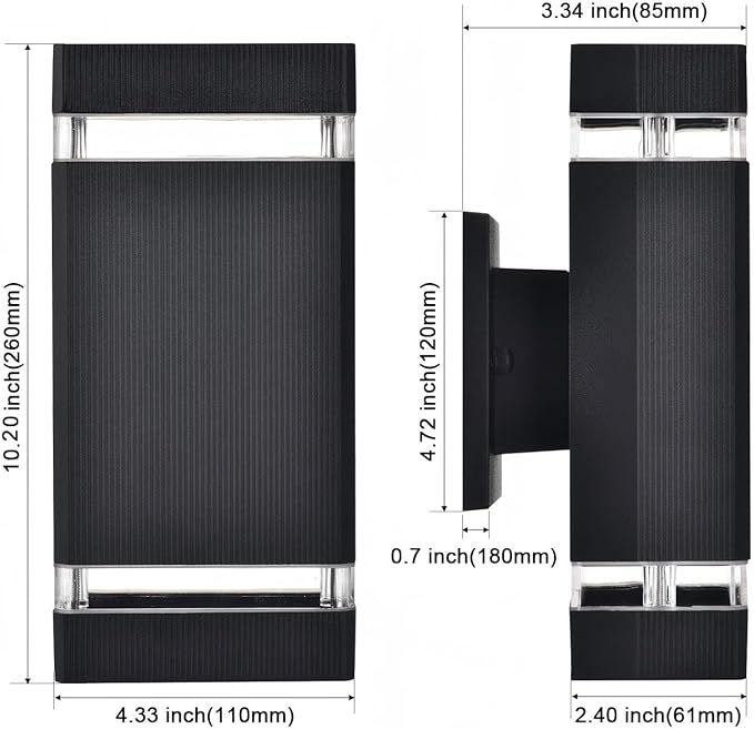 - 4. Modern Style That Elevates Your Home’s Look The sleek rectangular design with up-and-down lighting creates a modern aesthetic that instantly upgrades your curb appeal. Enclosed top and bottom covers prevent bugs from entering, while the soft ambient glow adds sophistication to your front porch, patio, or garage.