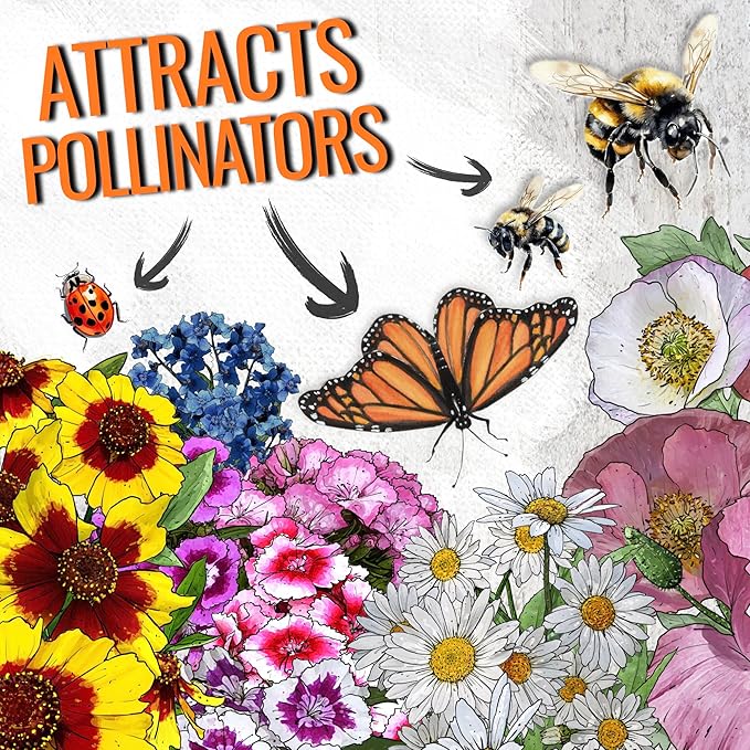 - Flower Seeds: Premium bulk package of wildflower seeds to establish a colorful garden filled with red flowers, orange flowers, yellow flowers, blue flowers, pink flowers, purple flowers and more!