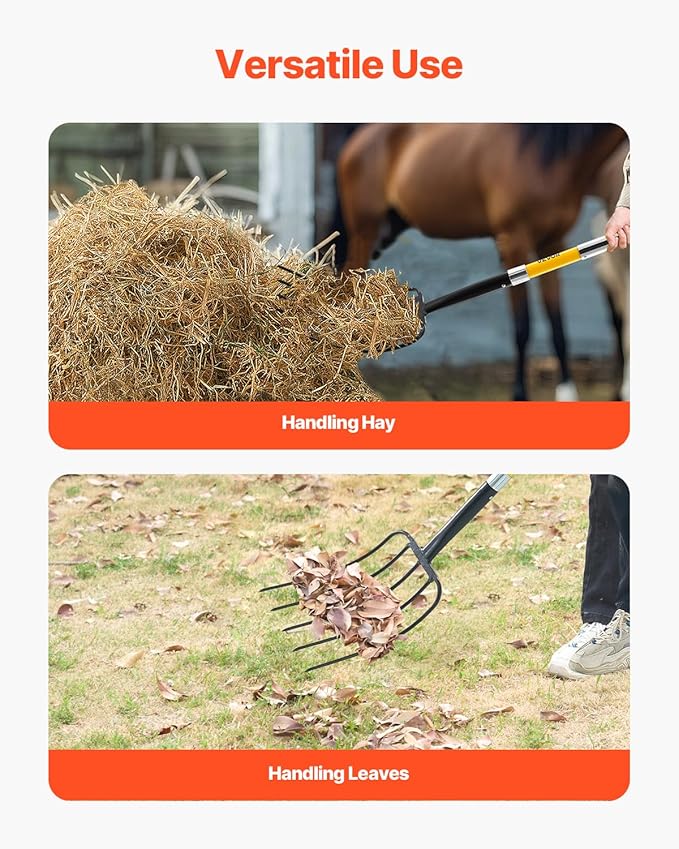 - Versatile Use: Ideal for handling large piles of leaves and pine needles, this digging fork garden tool is also great for moving mulch, wood chips, manure, hay, and more. However, it is not designed for digging. From leaves to straw, this tool can handle various tasks with ease.