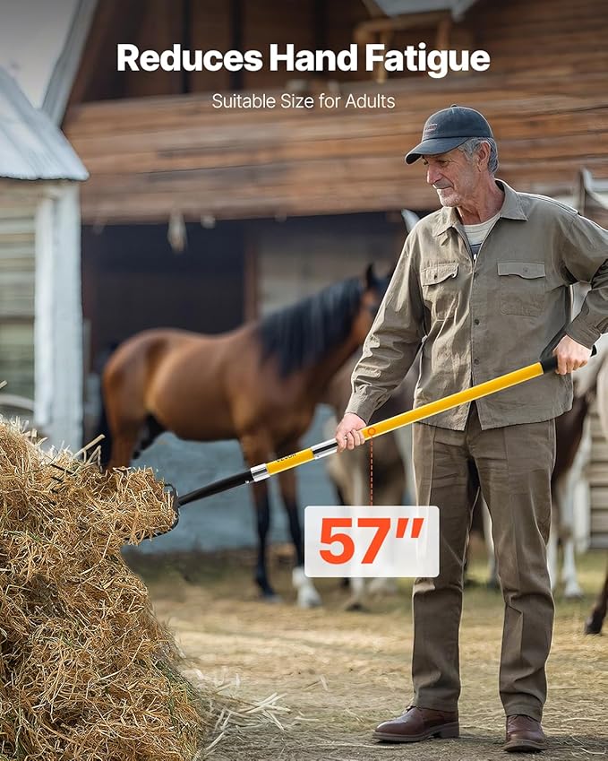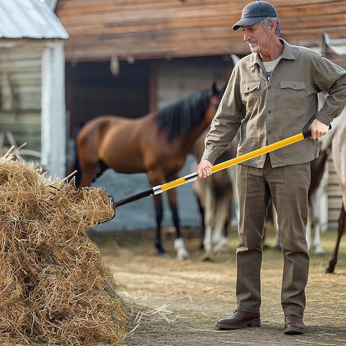 - Durable & Long-Lasting: The integrated forged spadding fork head and fiberglass handle design significantly improve wear resistance, extending the tool's lifespan. Whether for regular yard maintenance or frequent farm tasks, this tool handles it all with ease and durability.