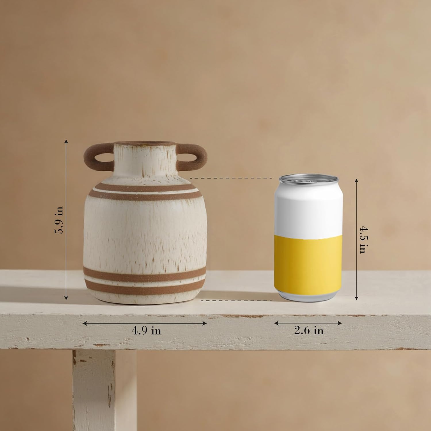 Rustic Farmhouse Ceramic Vase, Pastoral with 2 Ear Design, Boho Vintage Terracotta Vases for Bouquet、Fake Plants, Suitable for Home Decor, Shelf, Dining Table, Living Room, Mantle, Bathroom, 5.9 Inch
