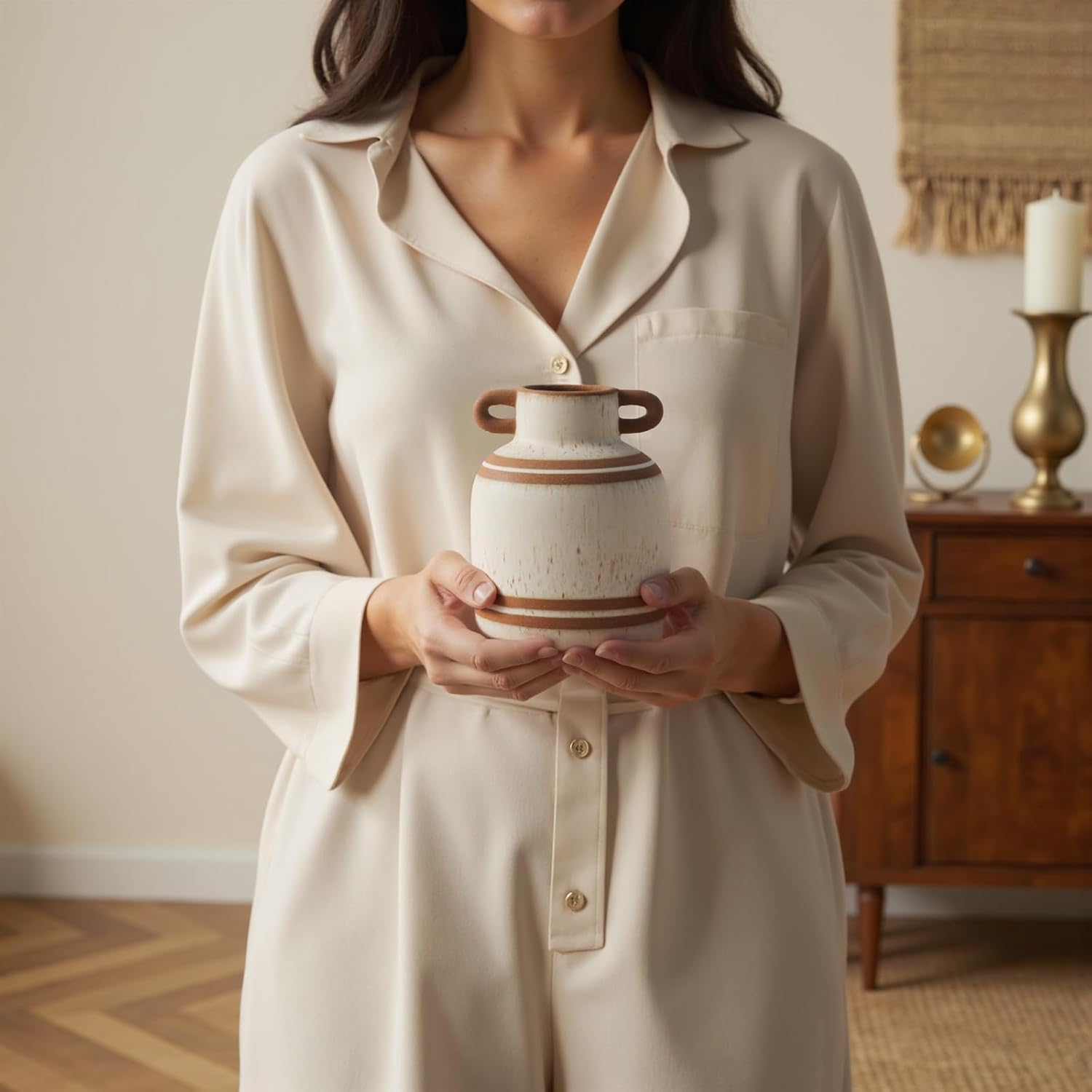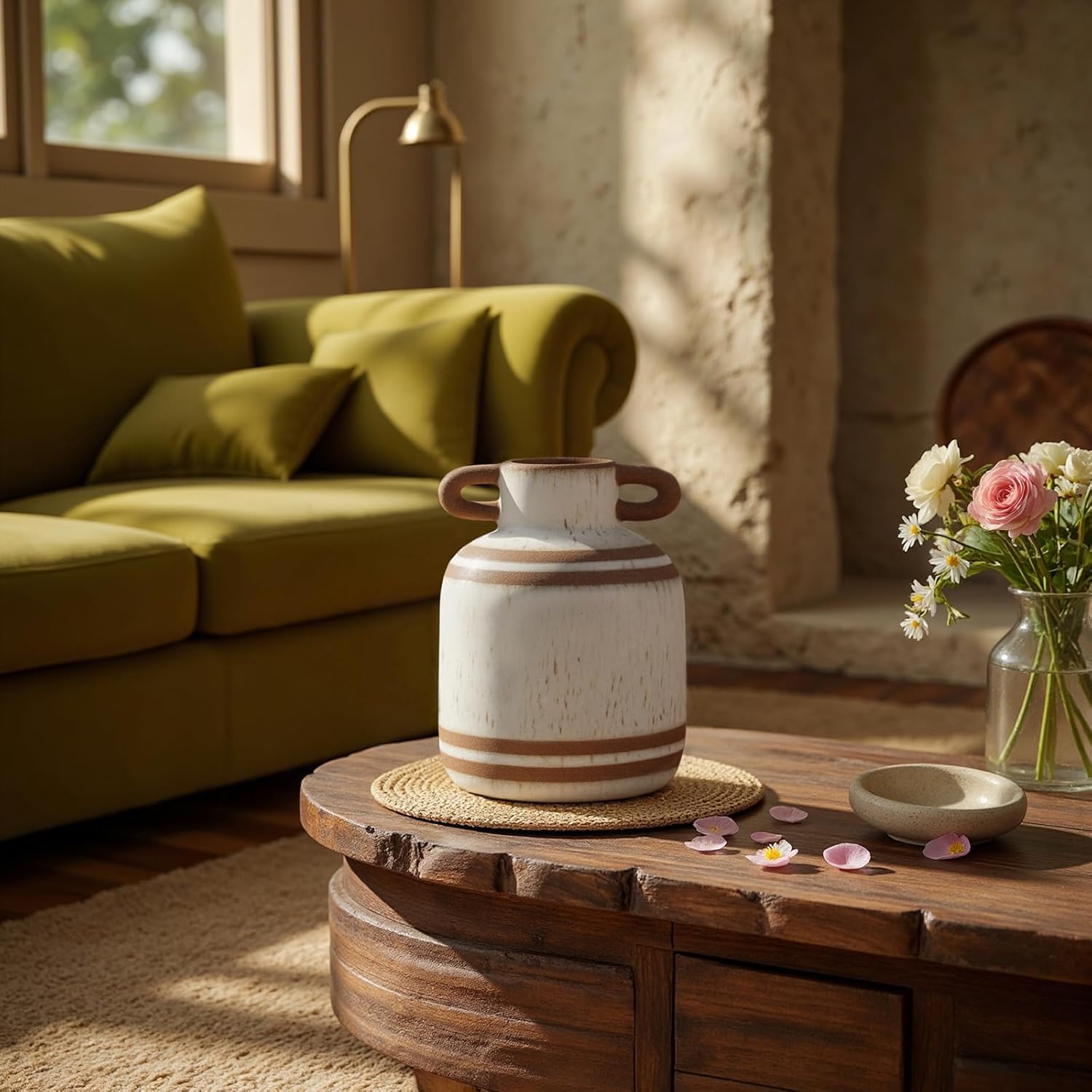 - 【CRAFTED FROM PREMIUM QUALITY CERAMIC】 You will be amazed by the craftsmanship of this farmhouse rustic vases for home decor, which are handcrafted by skilled artisans and fired at temperatures up to 1300 degrees to ensure long-lasting durability. This chic vase will complement your home decor, and its scratch-resistant base will ensure your furniture will remain beautiful for years to come.