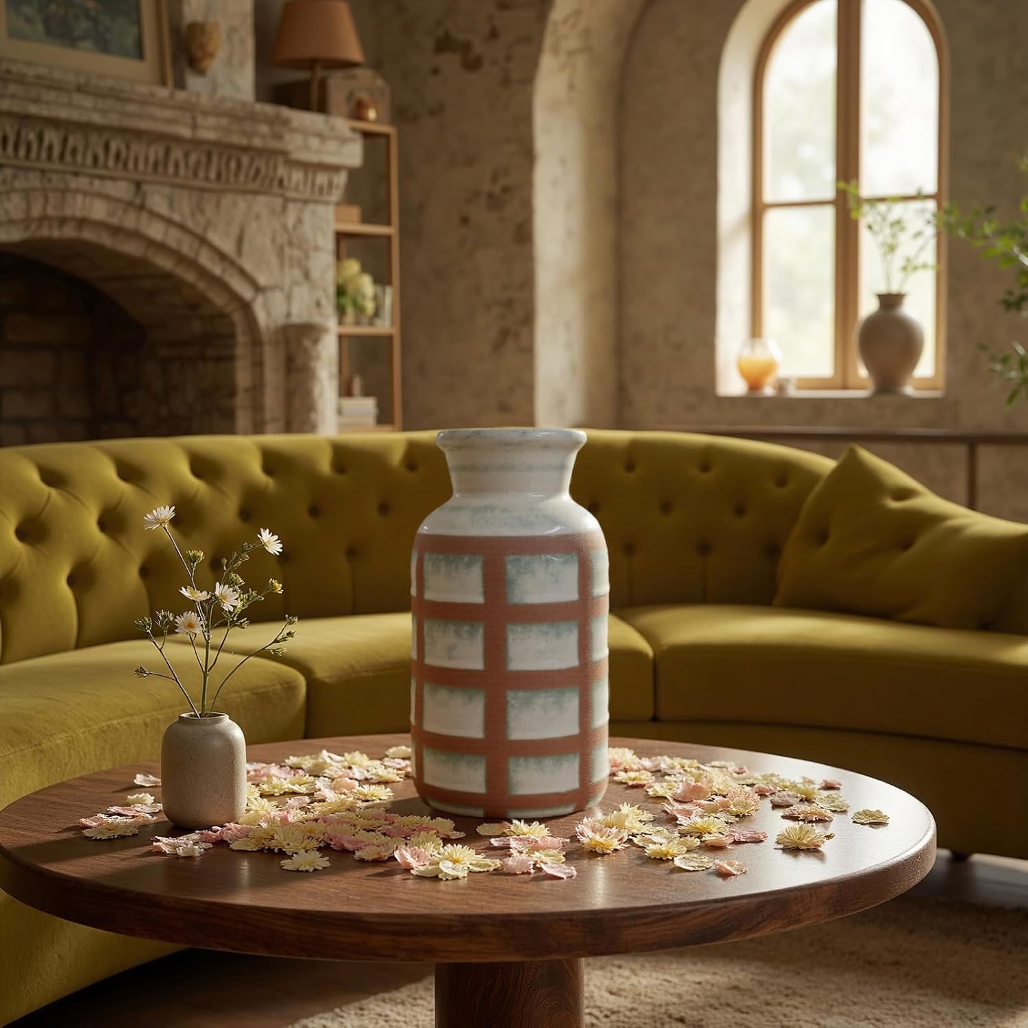 - 【CRAFTED FROM PREMIUM QUALITY CERAMIC】 You will be amazed by the craftsmanship of this farmhouse rustic vases for home decor, which are handcrafted by skilled artisans and fired at temperatures up to 1300 degrees to ensure long-lasting durability. This chic vase will complement your home decor, and its scratch-resistant base will ensure your furniture will remain beautiful for years to come.