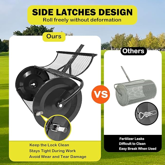 Compost Spreader, 24" Peat Moss Spreader, Roller Lawn Spreader with 3 Heights T Shaped Handle, Side Latches Powder Coated Steel Mesh Basket, Lawn & Garden Spreader for Spreading Manure Topsoil Black