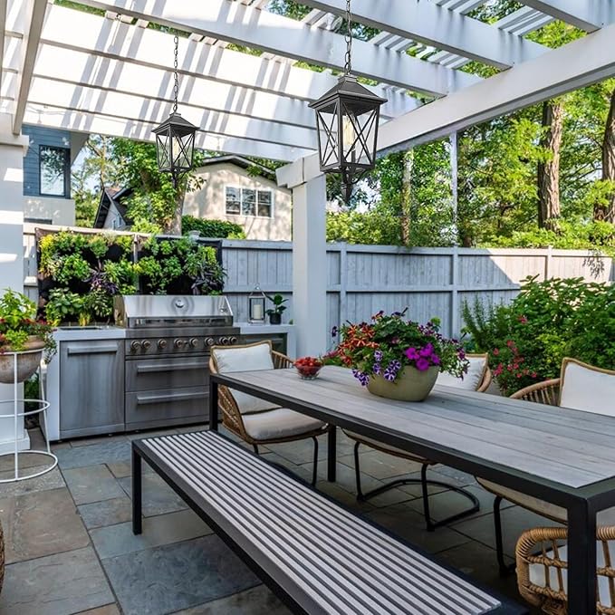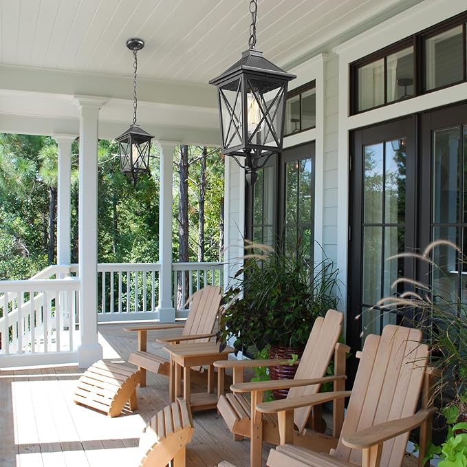 - Quality Outdoor Pendant Light - This outdoor pendant hanging lantern crafted of durable aluminum metal and seeded glass, require little to no maintenance. Rust-proof, waterproof, shock-resistant and thermally stable, don't worry about any bad weather.