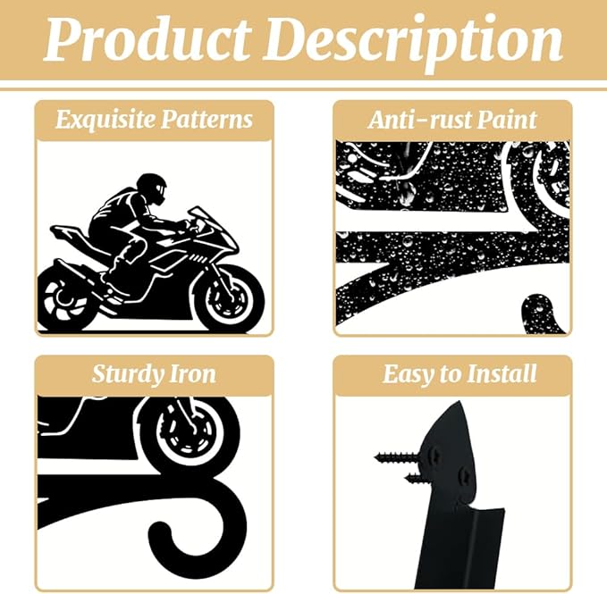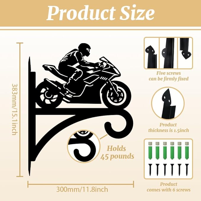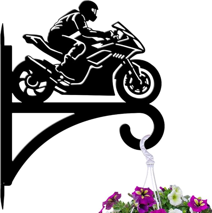 peacoblue Iron Plant Hangers Hooks for Outdoor Indoor Hanging Plants Flower Fern Pots Lantern Bird Feeder,11.8"x15.1" Weather Resistant Metal Wall Holder for Porch Garden Farmhouse(Motorcycle)