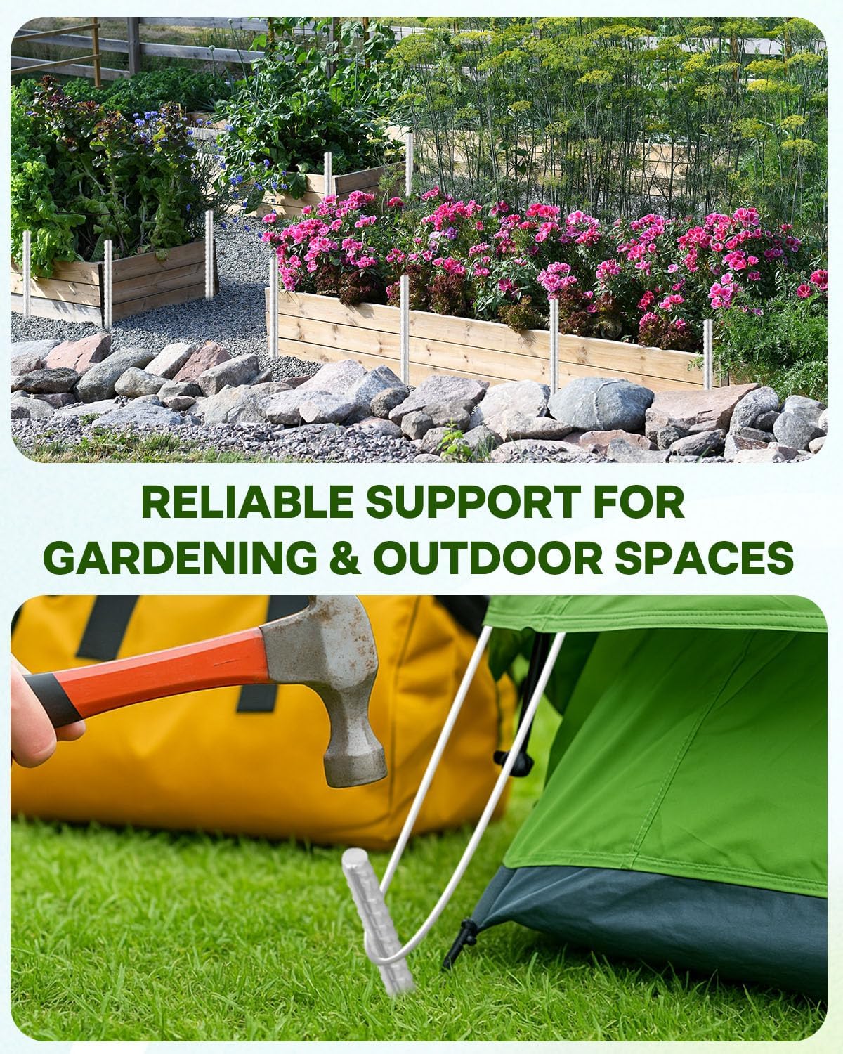 - Easy Installation and Stable Support: The chisel-pointed end allows easy insertion into hard, rocky soil. Simply hammer in to secure a stable foundation for your outdoor projects, providing reliable support