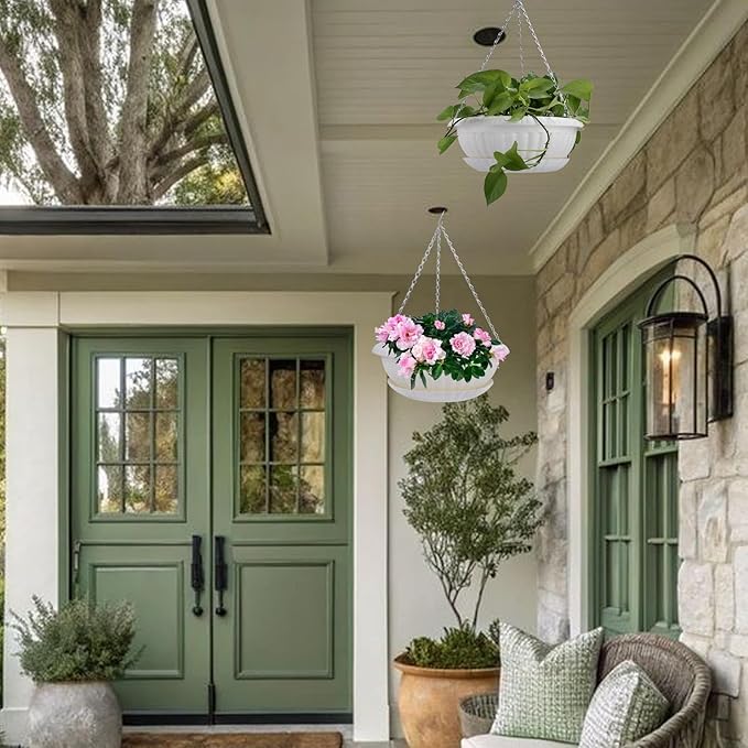 - Plant baskets are made of high quality plastic, light-weight. Coated metal chain, not easy to rust.