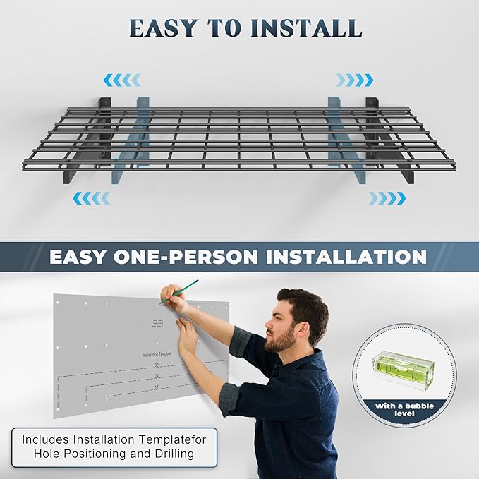 - đ§ăEffortless Modular Installationă- No drilling expertise required! Simply align the template, secure the brackets, and snap the grids into place. Compatible with concrete, wood, and brick walls (note: not for metal walls). Transform your cluttered garage into an organized space in under 30 minutes!