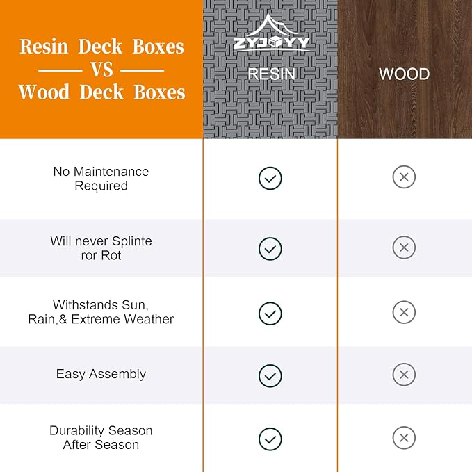 - Durable Resin Construction: Made from high-quality resin, this outdoor storage box is built to last. It’s weather-resistant, waterproof, and UV-protected, making it ideal for use as a cushion storage box for patio, deck storage box, or outdoor storage bin. Perfect for all your outdoor tool storage and furniture needs.