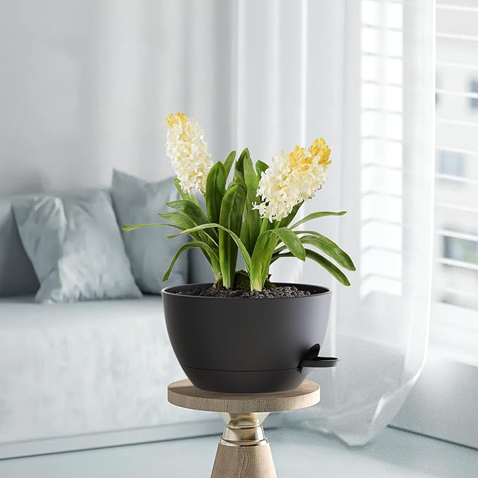 - 【Ventilation & Drainage】12-Inch self-watering hanging planter has multiple drainage holes between the planter and the tray, which can effectively drain and ventilate the plant. It can drain excess water and prevent overwatering, which is beneficial to promote the respiration of plants