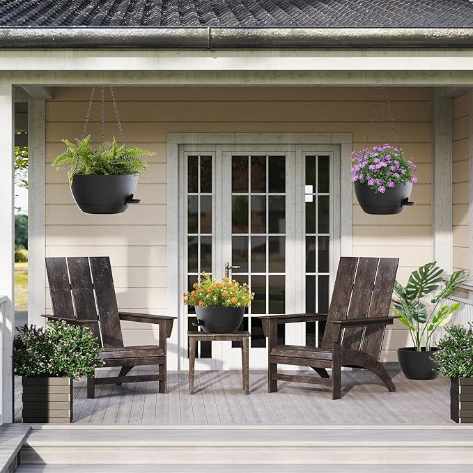 - 【Package Content】12 Inch Self-Watering Plastic Flower Pots x 2,Chain rack x 2,these Planters are easy to install and suitable for Hanging in various locations such as Balconies, Windows and Gardens