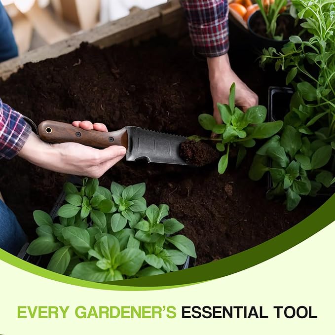 - MULTIFUNCTION BLADE GARDEN KNIFE: This garden knife is equipped with a sharp straight edge and a serrated edge. The straight edge is ideal for daily cutting, while the serrated edge can easily handle tough roots and stems. The blade is marked with inch measurements, enabling precise control of planting depth. The cord-cutting edge can also double as a bottle opener. With its walnut wood handle and practical blade, it is a reliable tool for both outdoor activities and gardening work