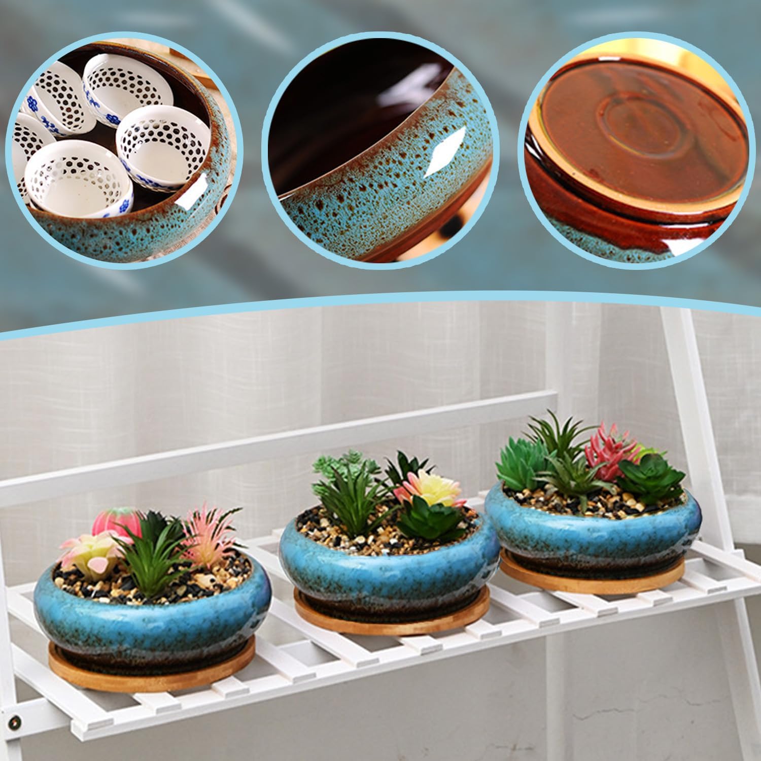 - Practical Design: The bowl-shaped structure offers ample root space, while ceramic maintains stable temperatures to shield plants from extremes. The bamboo stand elevates the planter, boosting air flow and preventing waterlogging—vital for plant health. Its compact size fits windowsills, balconies, and shelves, saving space neatly.