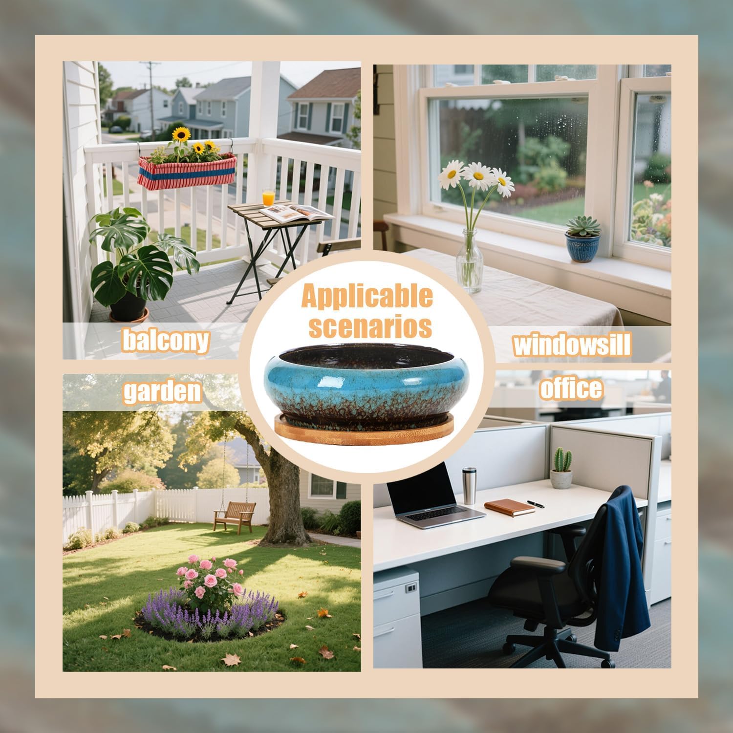 - Perfect for Gifting & Settings: With its exquisite sapphire ceramic finish and bamboo stand, this bowl planter makes a great gift for gardeners, housewarmings, or special occasions. Suitable for gardens, balconies, offices, and homes, it adds natural beauty wherever placed, fitting lotus, water lilies, or succulents effortlessly.