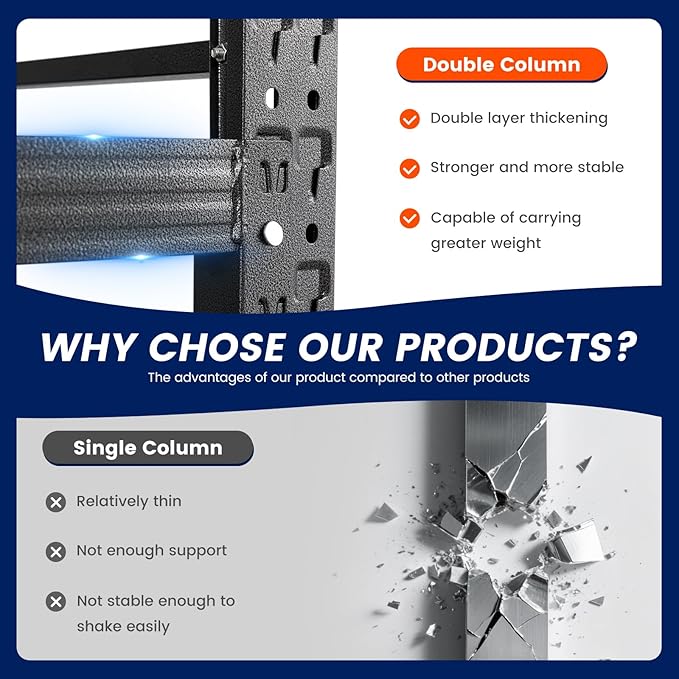 - 【Sturdy Design】The garage shlelving units reinforced diagonal braces designs,its could evenly distribute the weight,features reinforcing ribs for added strength,ensuring strong stability and resistance to deformation.
