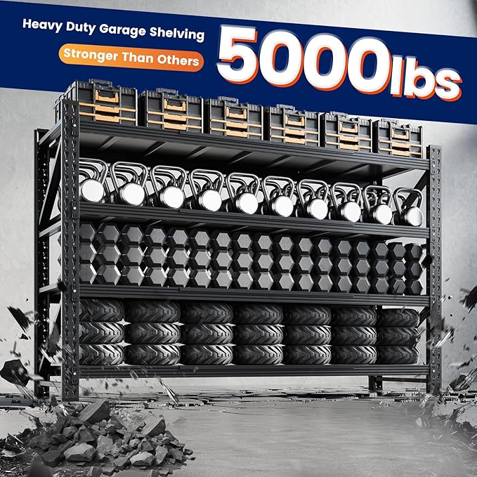 - 【Adjustable 4-Tier Shelving】Our garage storage shelves are as flexible as your plans.This heavy duty shelving height of each layer could adjustable by moving the crossbar up or down,to meet the different heights of varied objects needed and customize your own space!
