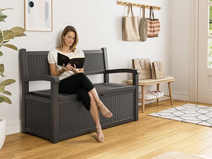 - All-Weather Protection: Crafted from weather-resistant resin, this outdoor bench with withstands sun exposure, moisture, and temperature changes while maintaining its structural integrity season after season, this porch storage stands tough for long-lasting protection.