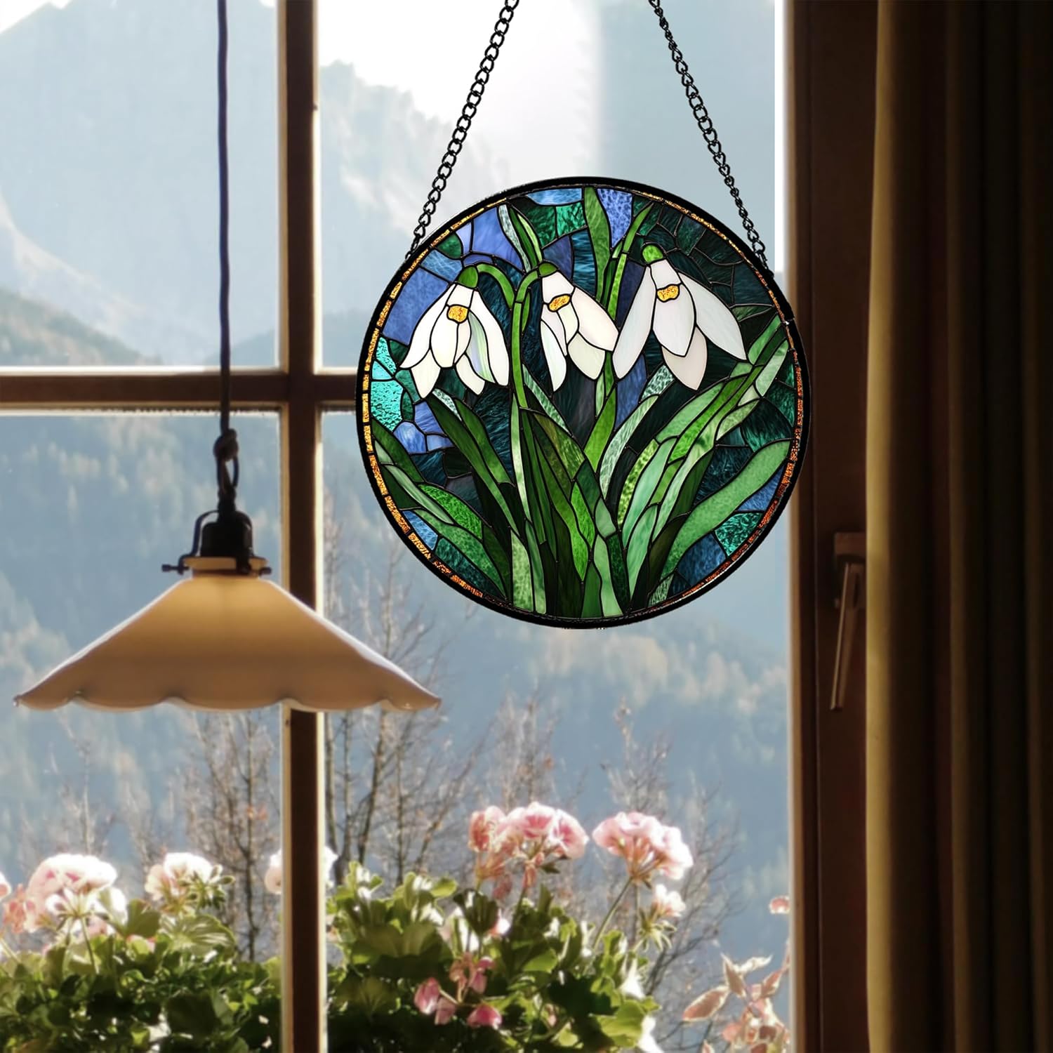 Stained Glass Window Hanging - Green Plants Birth Flowers Suncatcher for Doors Garden Patio Sun Catchers Decor Christmas Mother's Day Birthday Gifts for Women Men Mom Nana Friend 9.8 in