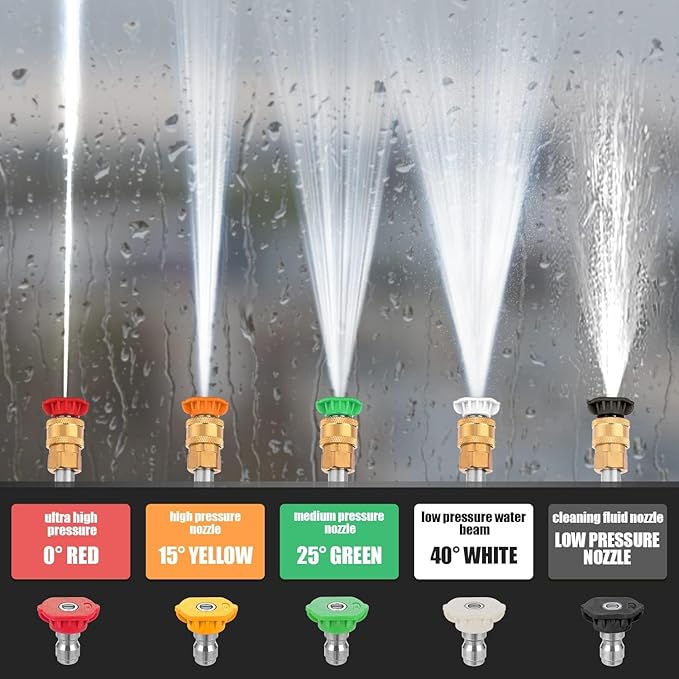 - 【Universal Compatibility】: Standard 1/4" quick-connect fitting works with most pressure washer accessories. Easily attach surface cleaners, extension wands, or foam cannons for enhanced cleaning capabilities.