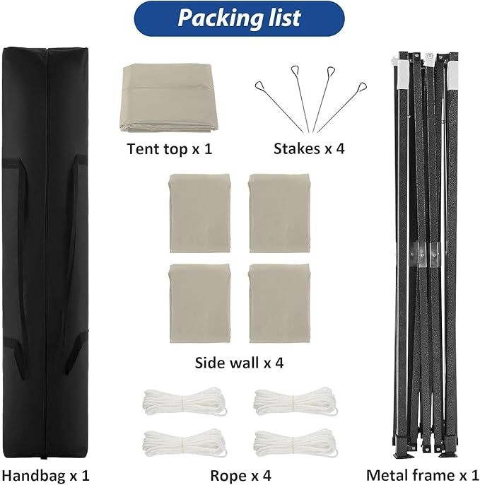 - [Installed in minutes] - Our canopy 10x10 is a pop-up type, the main body is linked in one, there is no splicing installation, and the sidewalls are installed as needed. Detailed instructions are also included. Two people can complete the tool-free installation in minutes.(Top service)- We will fully solve any problem products. We have private technical support experts, please feel free to contact us if you have any questions.