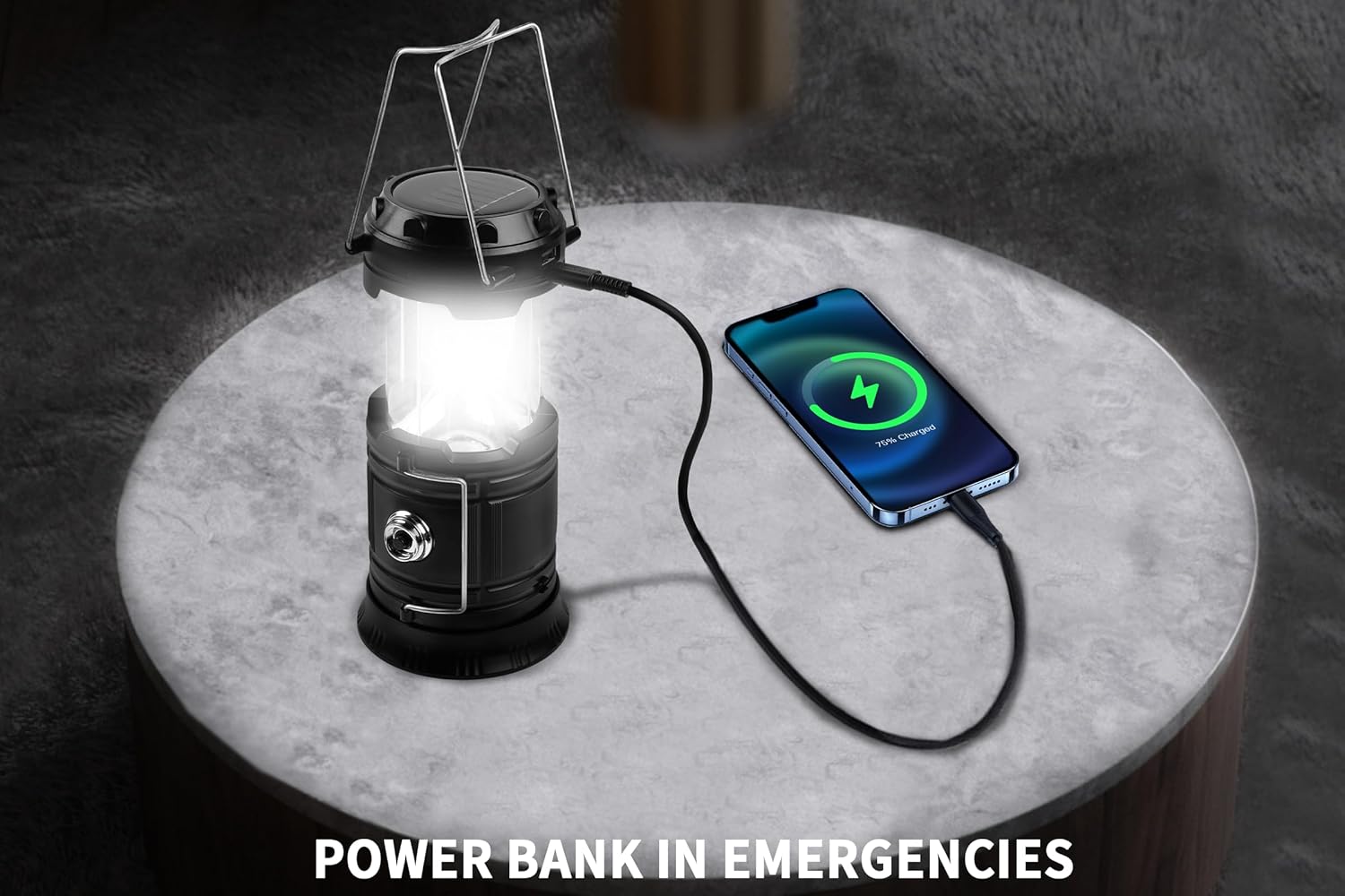 - 【Two Charging Methods】Built-in 1600mAh Li-ion rechargeable battery, the upgrade led lantern with two charging methods: Solar charging and USB Charging. Automatic power-off protection, Don't worry about overcharging. The lantern with USB output port can be used as a power bank for Android in emergency.