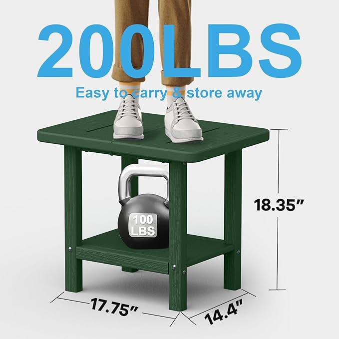 Outdoor Side Table - 2-Tier Storage All Weather Outdoor End Table for Patio - HDPE Morden Easy Maintenance Adirondack Side Table for Pool Porch Balcony Garden Lawn Backyard Outside Indoor