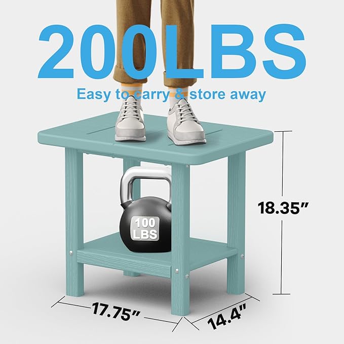 Outdoor Side Table - 2-Tier Storage All Weather Outdoor End Table for Patio - HDPE Morden Easy Maintenance Adirondack Side Table for Pool Porch Balcony Garden Lawn Backyard Outside Indoor