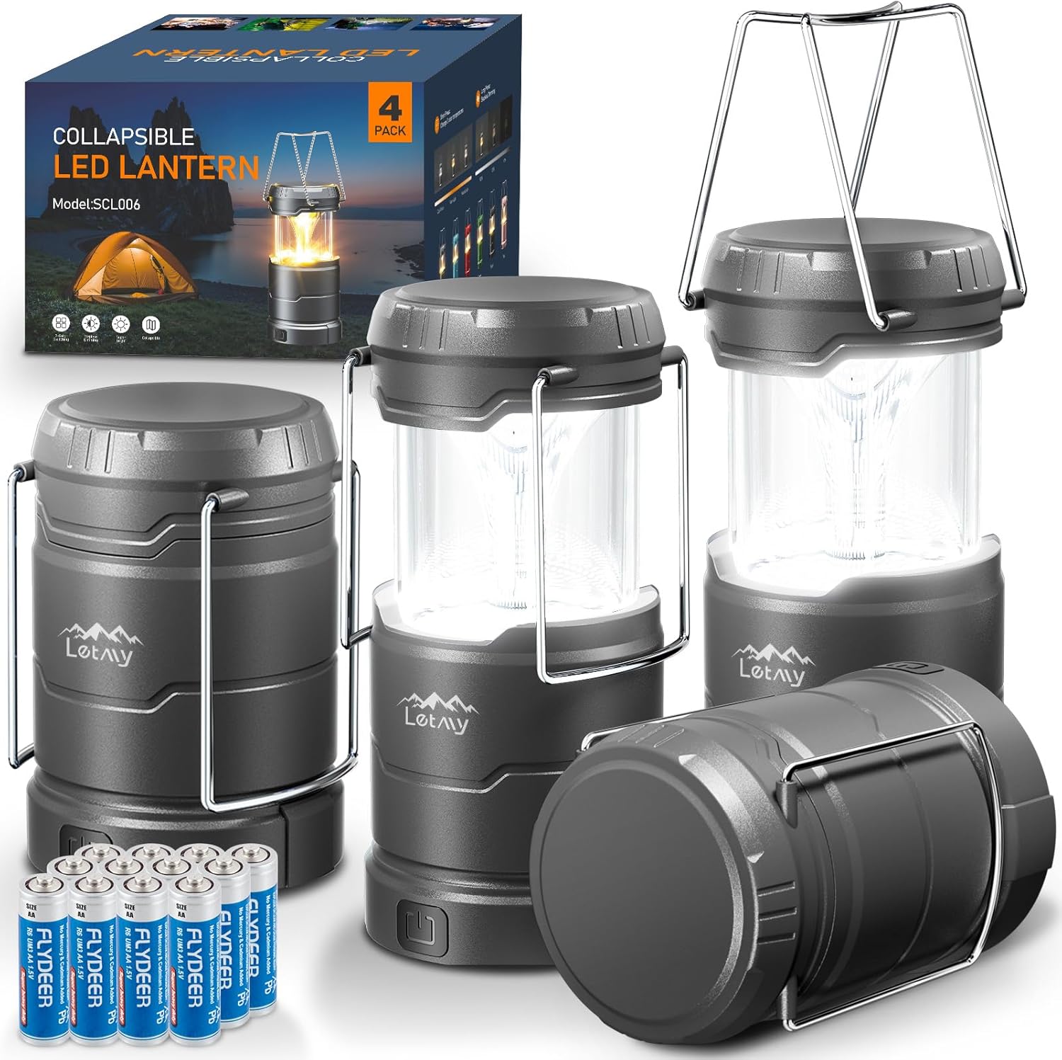 - 【All-In-One Kit & Worry-Free Safety】Lantern for camping contains 4 pack emergency lantern, 12pcs AA batteries and an user manual, so the battery operated lanterns light up immediately without charging. The battery power supply of led lanterns for power outages is safe and stable, providing long-lasting and reliable lighting, and eliminating the hidden danger of charging fires. Not only is camping lantern a great gift, but camping flashlight provides peace of mind for family emergency reserves