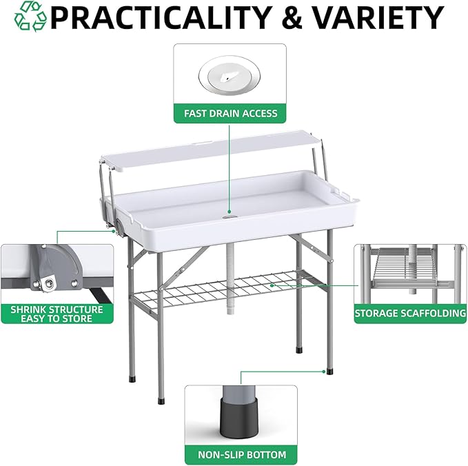 - Easy Assembly: Quick and simple installation! The drain is assembled according to the instructions, and the entire table can be set up in just 3 minutes. Unfold and use immediately.