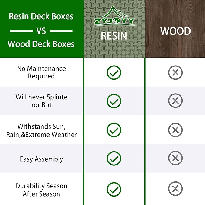 - Durable Resin Construction: Made from high-quality resin, this outdoor storage box is built to last. It’s weather-resistant, waterproof, and UV-protected, making it ideal for use as a cushion storage box for patio, deck storage box, or outdoor storage bin. Perfect for all your outdoor tool storage and furniture needs.