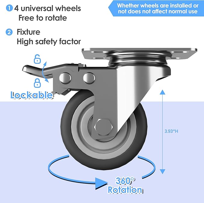 - 【Swivel Wheels with Lock】Metal storage cabinet with wheels has 4 lockable wheels,you can move them around as needed and the casters and wheels work great on all the different surfaces,besides the wheels can be locked and you can fix the cabinet where you want to place.