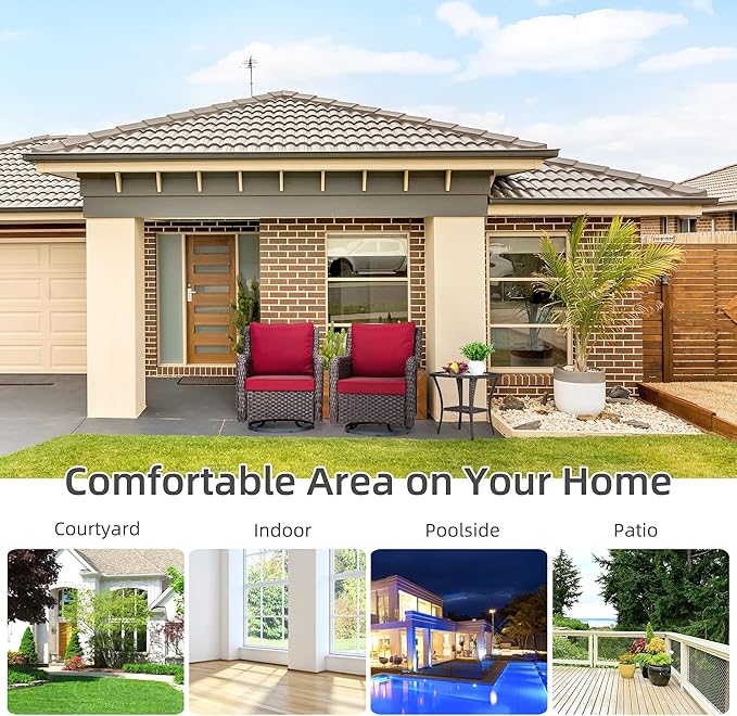 - 360° Swivel and Rocking Function: Outdoor chairs allow you to rotate a full 360 degrees and rock back and forth effortlessly. Whether you want to enjoy a sweeping view or gently sway in the breeze, our swivel rocker patio chair ensures a relaxing experience for both your body and mind