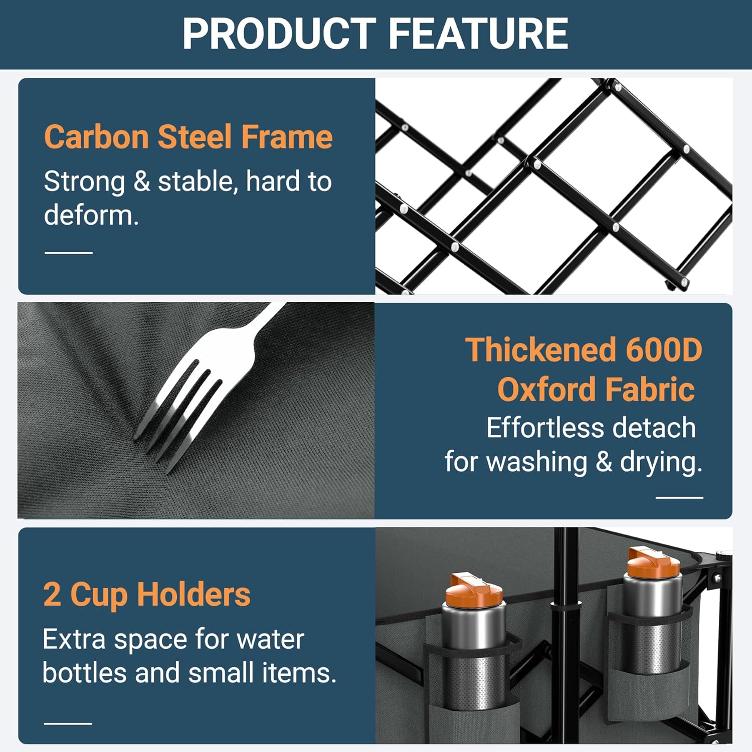 - 【360LBS Load Capacity, 3x Others】 - Built with a reinforced and sturdy steel frame that's 20% thicker than other standard-sized wagons, our utility wagon is effortless hold up to 360lbs without deforming or cracking. The removable 600D oxford fabric is not only resistant to wear and tear but also odor-free, ensuring reliable performance over time.