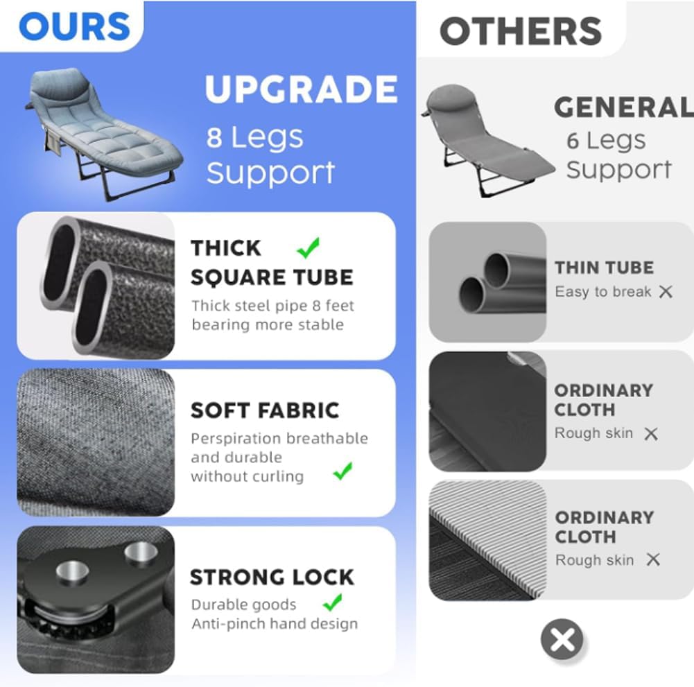 - Multifunctional 3 in 1 Folding Bed: Converts effortlessly from recliner to bed and lounge chair ideal for camping patio or small space living